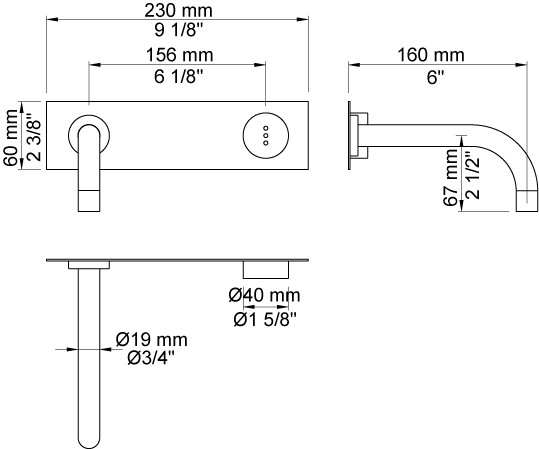 Vola Indbygningsventil til en slags vand, til berøringsfri betjening Fast udløb, 160 mm, ø19 mm Dækplade Krom 16 ½''RG