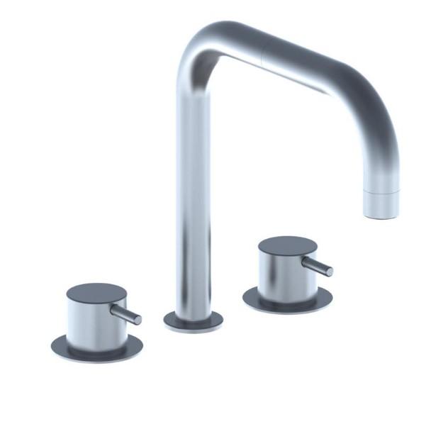 Vola To-grebsblander bestående af 2 stk keramiske stopventiler Dobbelt svingbar udløb, 200 mm, ø24 mm Standard 25 mm Rosetter Krom 16 ½''RG